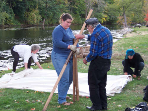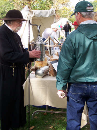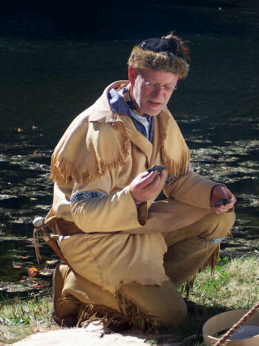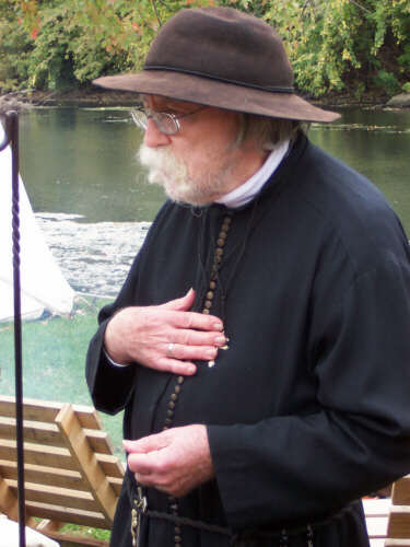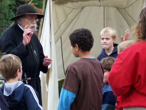 Michigan Living History Encounters (originally Encampment) is a branch of the Teaching & Sharing Centers non-profit organization. Our participation in the Fall Color Cruise & Island Festival continued until 2020. Designated the "Kenn Kuester Memorial Event," it expanded from just the voyageur-fur trade period to include 1800s, and 1900s, displays. Covid-19 pre-empted our participation in 2020, when the three day FCC&IF was replaced with a one day Grand Ledge Fall Festival. We rejoined the new one day festival in 2021, but logistically unable to set up for a single day on the island, we relocated our encampment and displays to Joyce Park (115 East Lincoln Street) directly behind the Teaching & Sharing Center of Grand Ledge (417 South Bridge Street). Although, as an active teaching & sharing center, it currently only exhibits during the festival, it is an exceptional learning experience for those who take the time to visit with our presenters. This program is in its infancy, and has great potential for expansion and involvement. Anyone curious about MLHE activities, or possibilities, should contact us. We also filed "American Living History Encounters" as a DBA for those who have family history, or simply an active interest, in aspects of our American history beyond Michigan borders that they feel could add to the teaching and sharing opportunities being offered by MLHE-ALHE. Kenn Kuester is seen below teaching in his role as Father Marquette. The "Kenn Kuester Memorial Event" during the Grand Ledge Fall Festival continues in memory of his annual presence, for almost twenty years, during the former three day festival. He spent both his days and nights functioning from, and sleeping in, his "priest" tent through all types of weather conditions. A benefit of his nightly presence at the voyageur encampment site was being able to join him around the campfire, during the quiet of non-festival hours. "It is important to understand your history, if you wish to be wise in determining your future." |